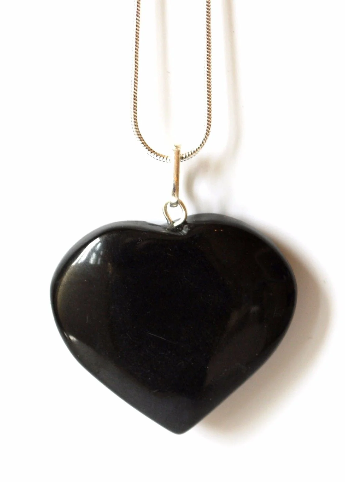Beautiful Natural Black Obsidian Crystal Heart Pendant With Silver Plated Chain By Reiju.