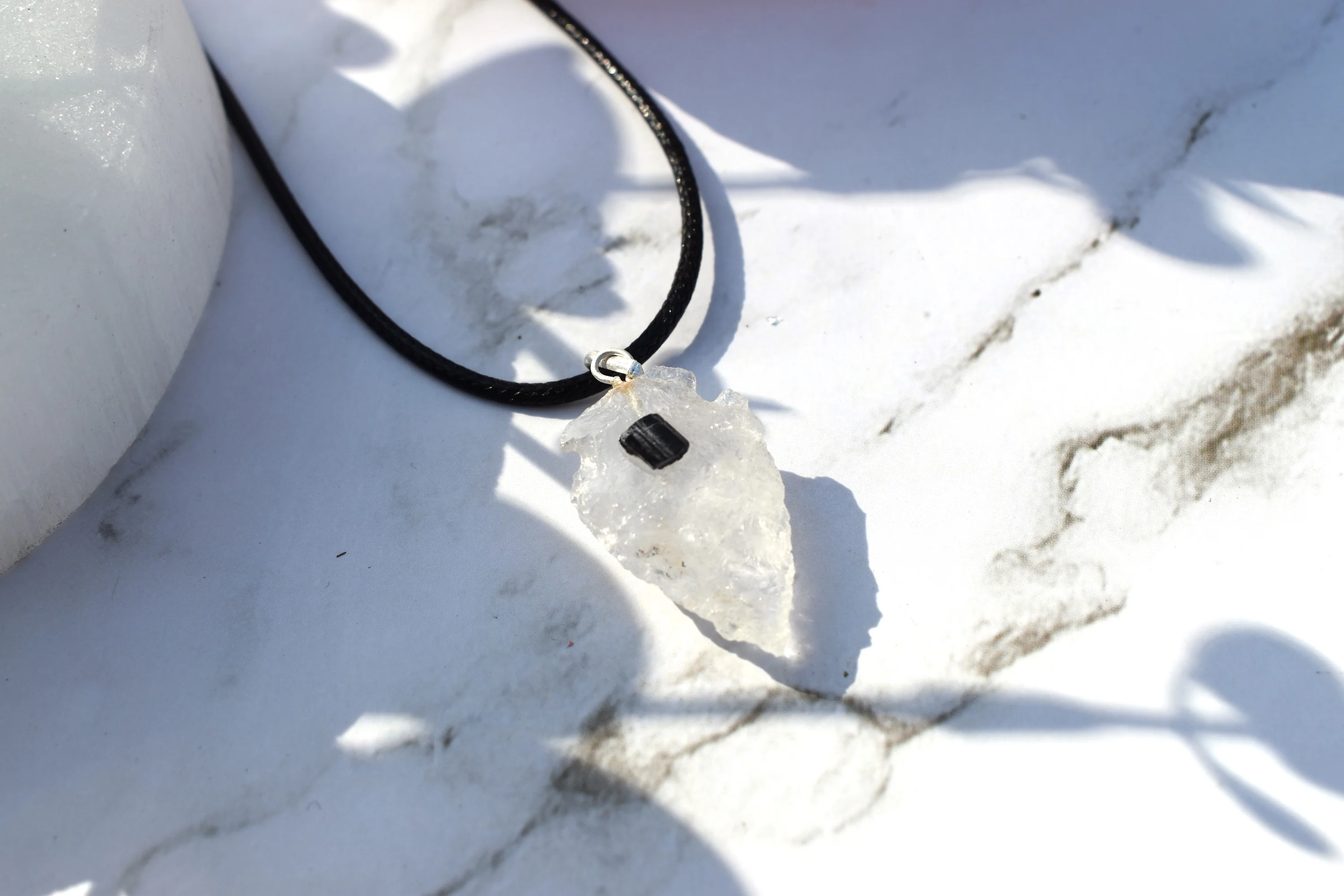 Clear Quartz & Black Tourmaline Natural Arrowhead Pendant Necklace—